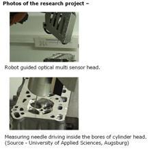 Inspection of cylinder head parameters is one of the time consuming activities for a quality control in any engine shop. Therefore till now this inspection is carried out offline on a random basis. The Federal Ministry for Education and Research, Germany felt the need to develop efficient, robot guided optical inline measuring system for this process. The task to develop such a system is carried out by the University of Applied Sciences, Augsburg and Institute for Photogrammetry, Stuttgart along with other Industry partners (GFMesstechnik GmbH - Berlin/Teltow, ISIS Sentronics GmbH - Mannheim, KUKA Roboter GmbH - Augsburg, BMW AG - Munich) and VDI Technology Centre.
